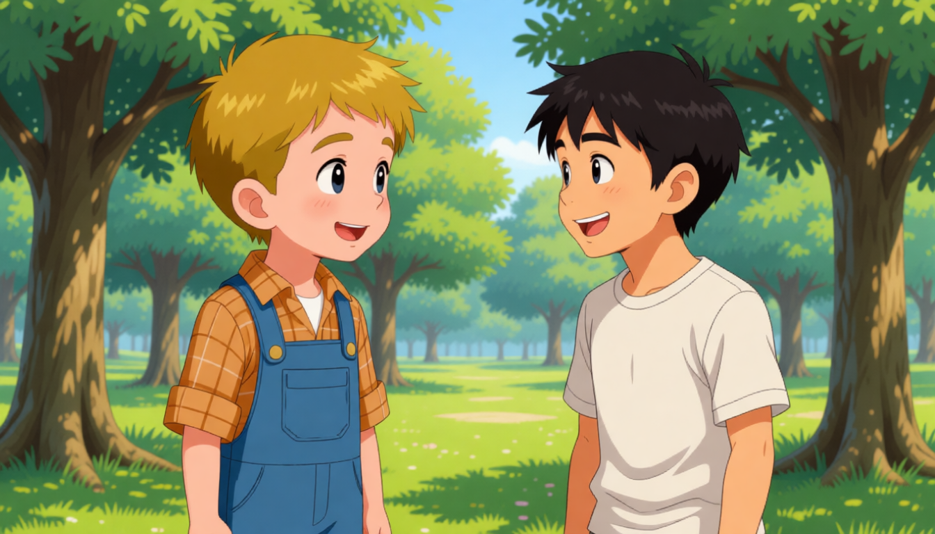 Peter replies, "You like singing? I like singing too! My favourite song is 'You Are My Sunshine'. Do you know it?" Zhang Peng knows this song. He feels happy.