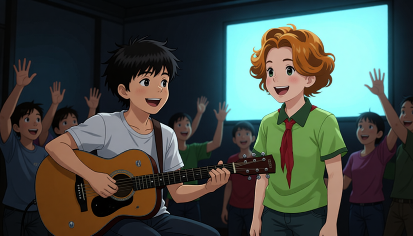 Zhang Peng's school has a music party. Zhang Peng asks his teacher Peter if he can join the party on his phone. Peter says yes. At the party, Zhang Peng plays the guitar and sings "You Are My Sunshine". Peter sings the song on the big screen. Everyone cheers for their friendship.