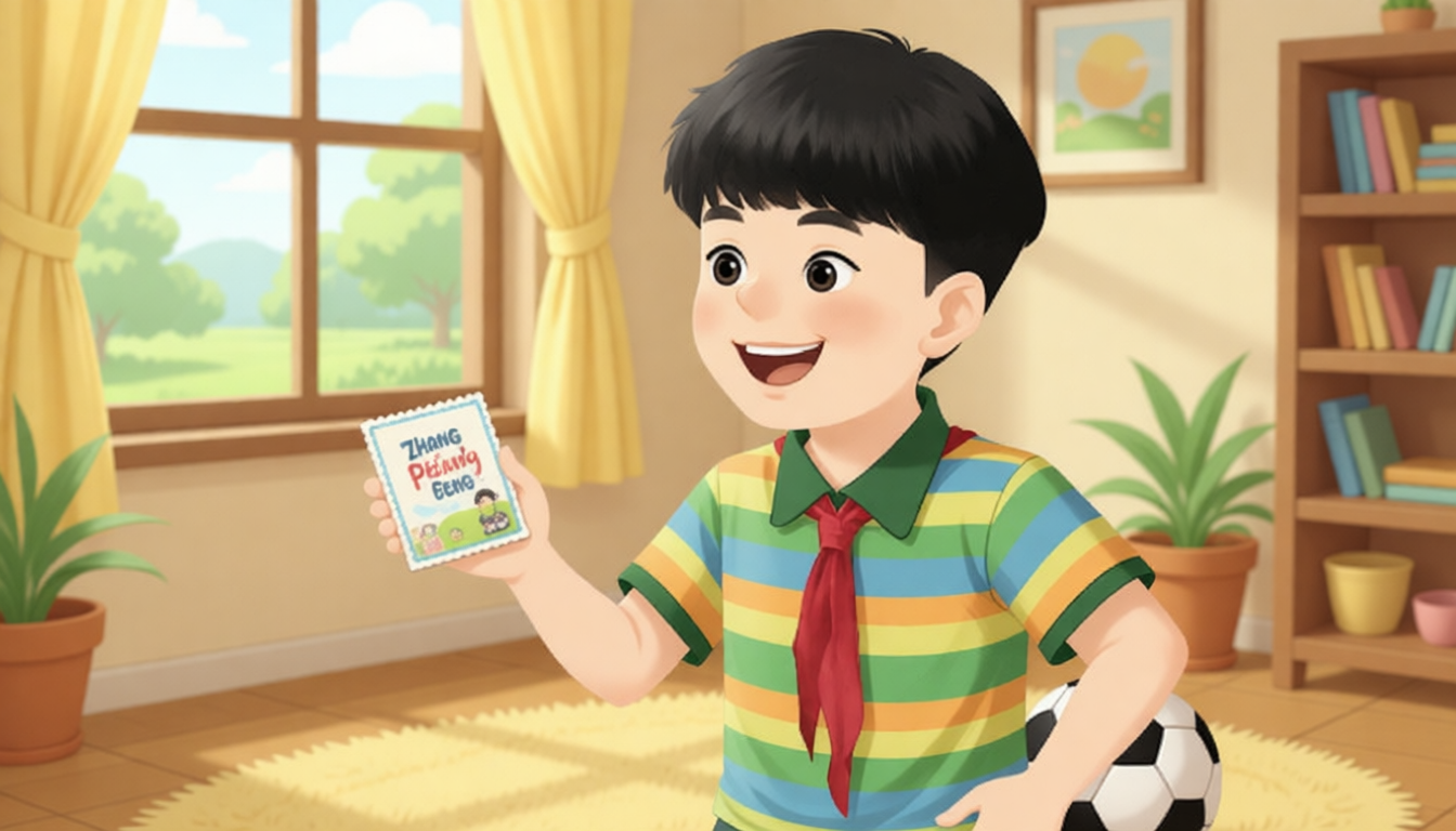 Zhang Peng is very happy. He can't wait to share his hobbies with Peter. "Dear Peter, nice to meet you," he says. "I like singing and playing football. I also like collecting stamps."