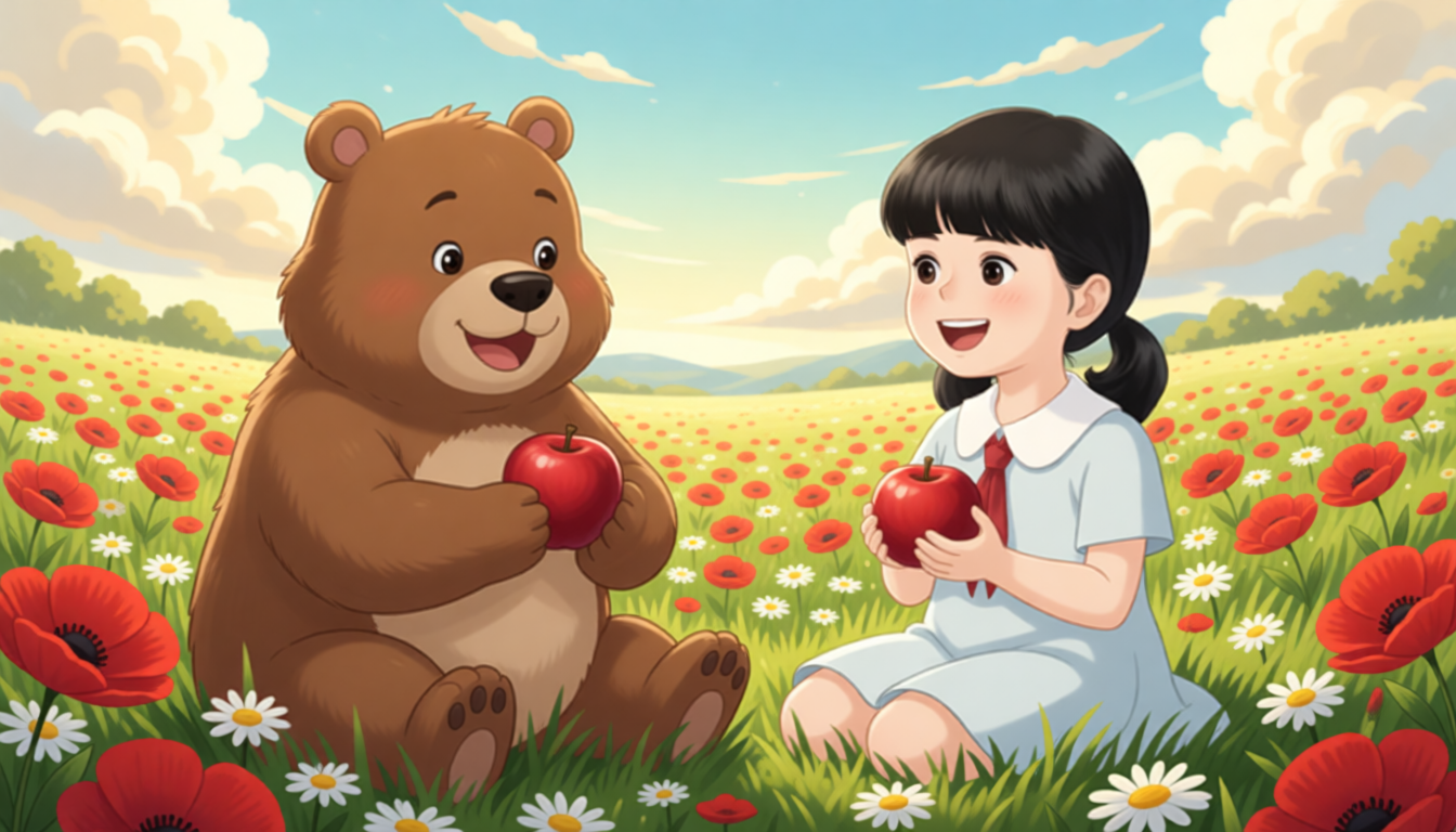 Chen Jie is happy. Chen Jie and Zoom share apples. Chen Jie is happy.